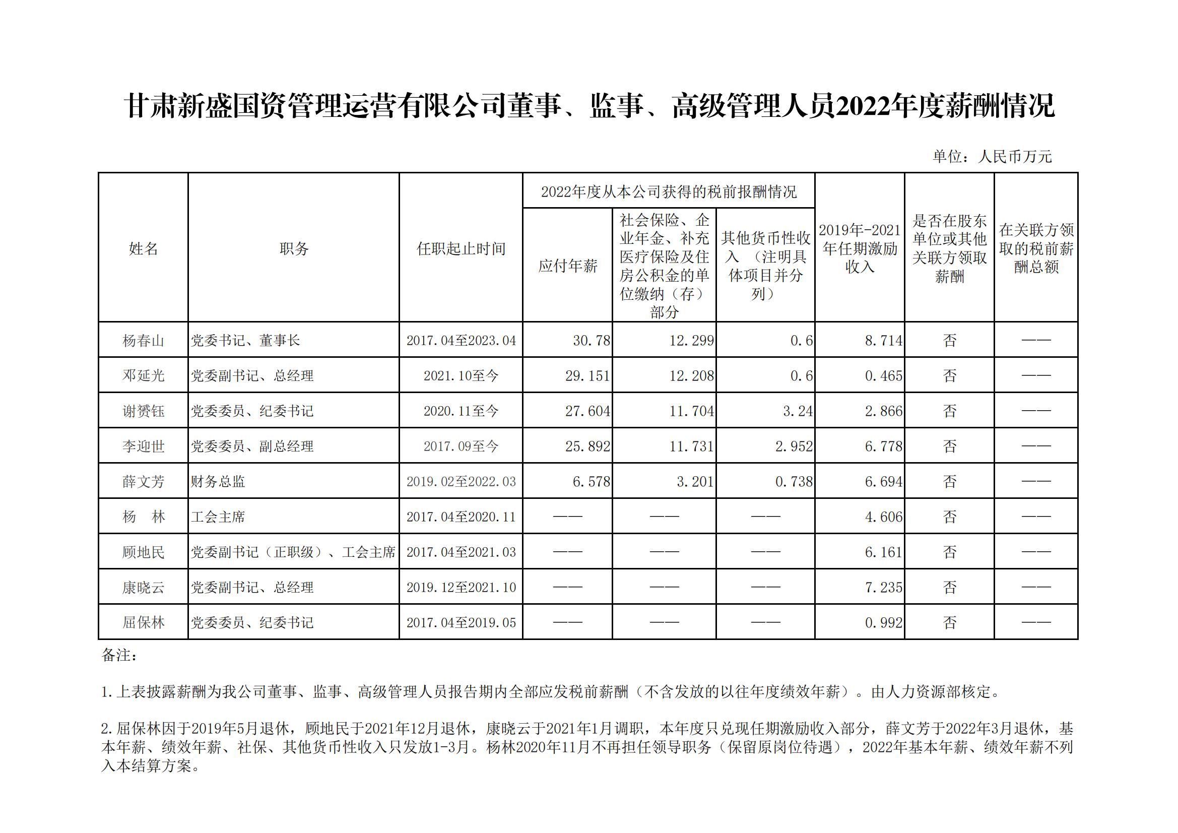 甘肃新盛公司2022年度工资分配信����� �������Ƴ������������ �������Ƴ�������息及董事、监事、高级管理人员薪酬����� �������Ƴ������������ �������Ƴ������������ �������Ƴ������������ �������Ƴ�������情况